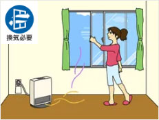 ガスファンヒーターやガス赤外線ストーブの使用中は、1時間に1~2回(1~2分)程度換気を行ってください。